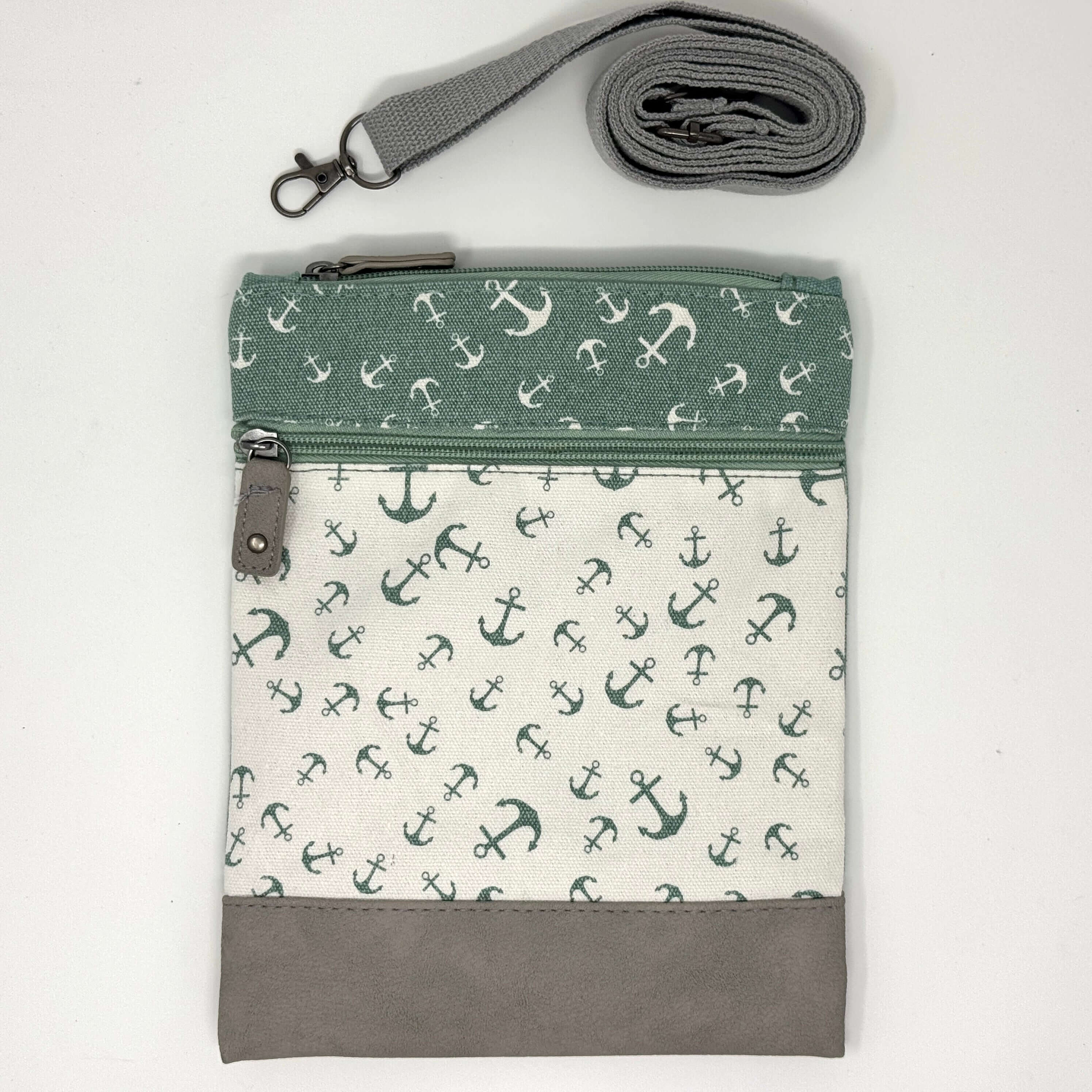 Maritime Umhängetasche Anker-Muster – Grau & Weiß – In verschiedenen Farben erhältlich