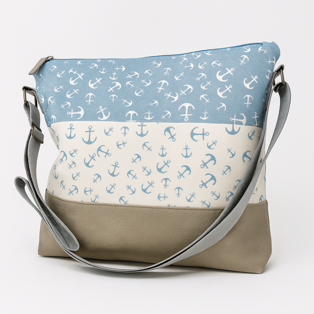 Patchwork Nautiktasche „Anker“ – Handgemacht & Maritim